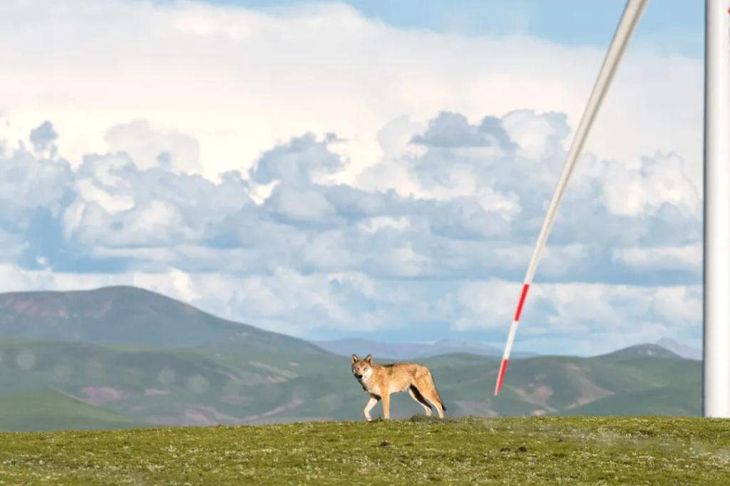 “低吼的野狼、翱翔的秃鹫、跳跃的野兔,还有转动的风机,在这荒凉的地方看久了还觉得挺和谐的。”黄斌说。